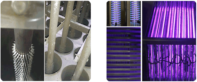 该技术是目前国内外普遍采用的低温等离子体技术方案。其电极由绝缘层包裹,避免了生产明火的可能。相比较电晕放电技术,其等离子体密度大,治理效果好,性能稳定、安全可靠,在国内外VOCs治理领域已有广泛应用。下图为DDBD设备起辉时的实拍图片。