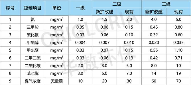 《恶臭污染物排放标准》规定了八种恶臭污染物的一次最大排放限值、复合恶臭污染物的臭气浓度限值及无组织排放源的厂界浓度限值。同时,近一两年来,各省级环保部门也分别出台新标准,加强恶臭污染物治理与管控 。