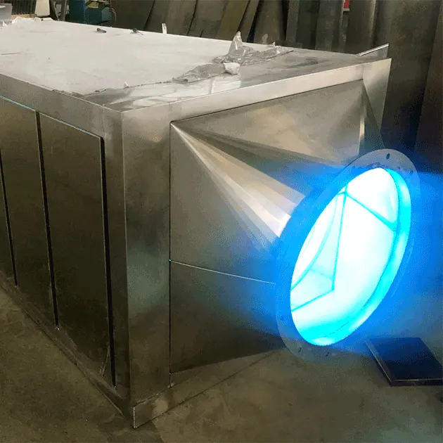 臭氧对紫外线光束照射分解后的有机物具有极强的氧化作用,可改变恶臭气体如:氨、三甲胺、硫化氢、甲硫氢、甲硫醇、二甲二硫、二硫化碳和苯乙烯,硫化物H2S、VOC类,苯系物、乙酸乙酯、甲醛、乙醛、烷烃、烯烃、炔烃、芳香烃、酚、硫化氢、硫醇、硫醚、硝基等的分子链结构,使有机或无机高分子恶臭化合物分子链,在高能紫外线光束照射下,降解转变成低分子化合物,达到排放标准。